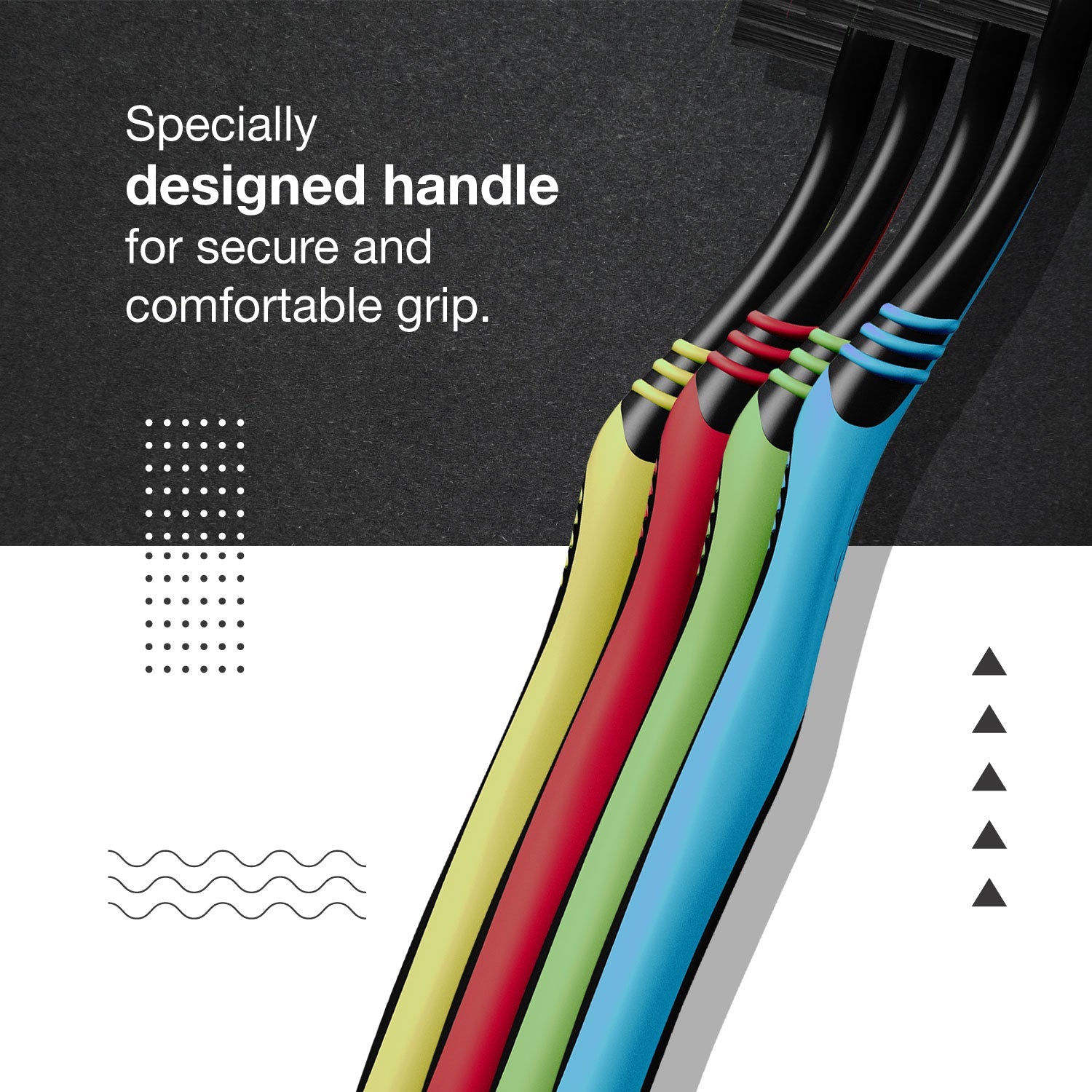 A Soft Rubber Tongue Cleaner at the back of the head removes excess bacteria that can improve your sense of taste. Available in 4 exciting colours.
