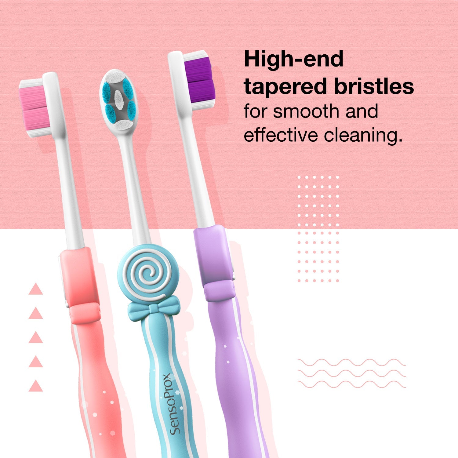 Made from special feather soft bristles, our Toddler range of toothbrushes are extremely gentle on gums while also cleaning effectively. A light grip handle allows your little one to hold the toothbrush easily.